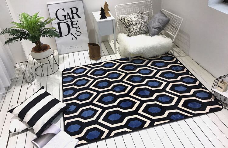ブルーのカラーがシックなカーペットです。